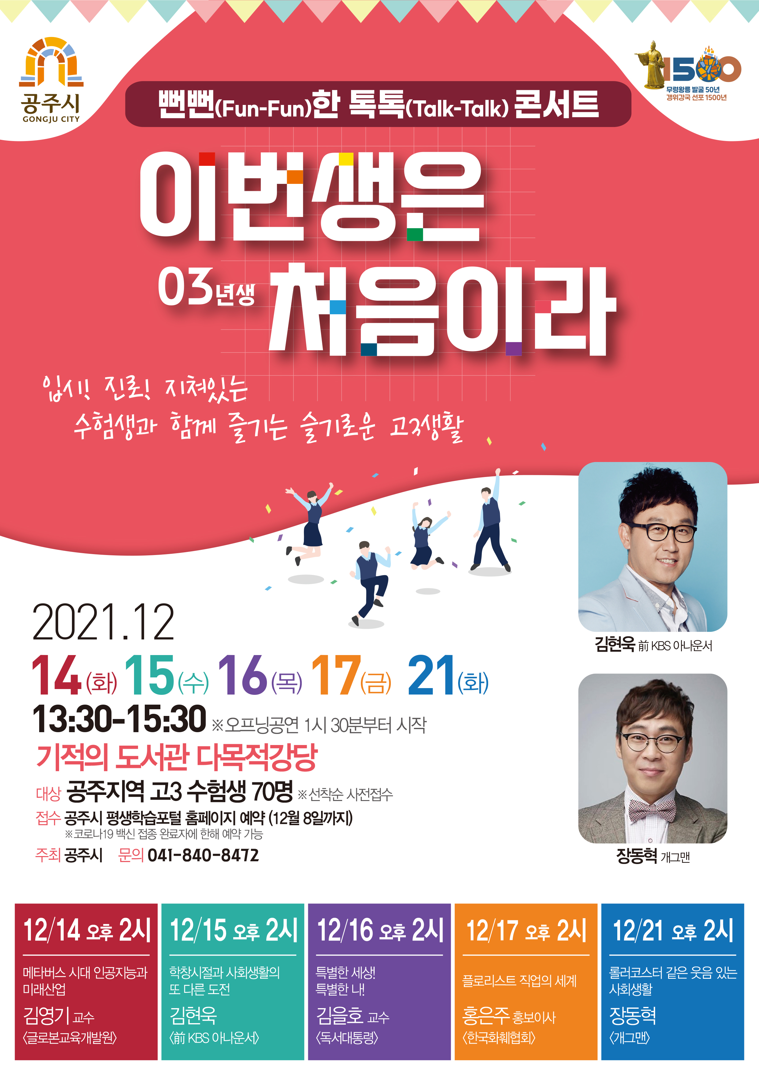 | 강좌명 | [진로콘서트] 특별한 세상! 특별한 나! | 교육기간 | 2021-12-16~ 2021-12-16 |