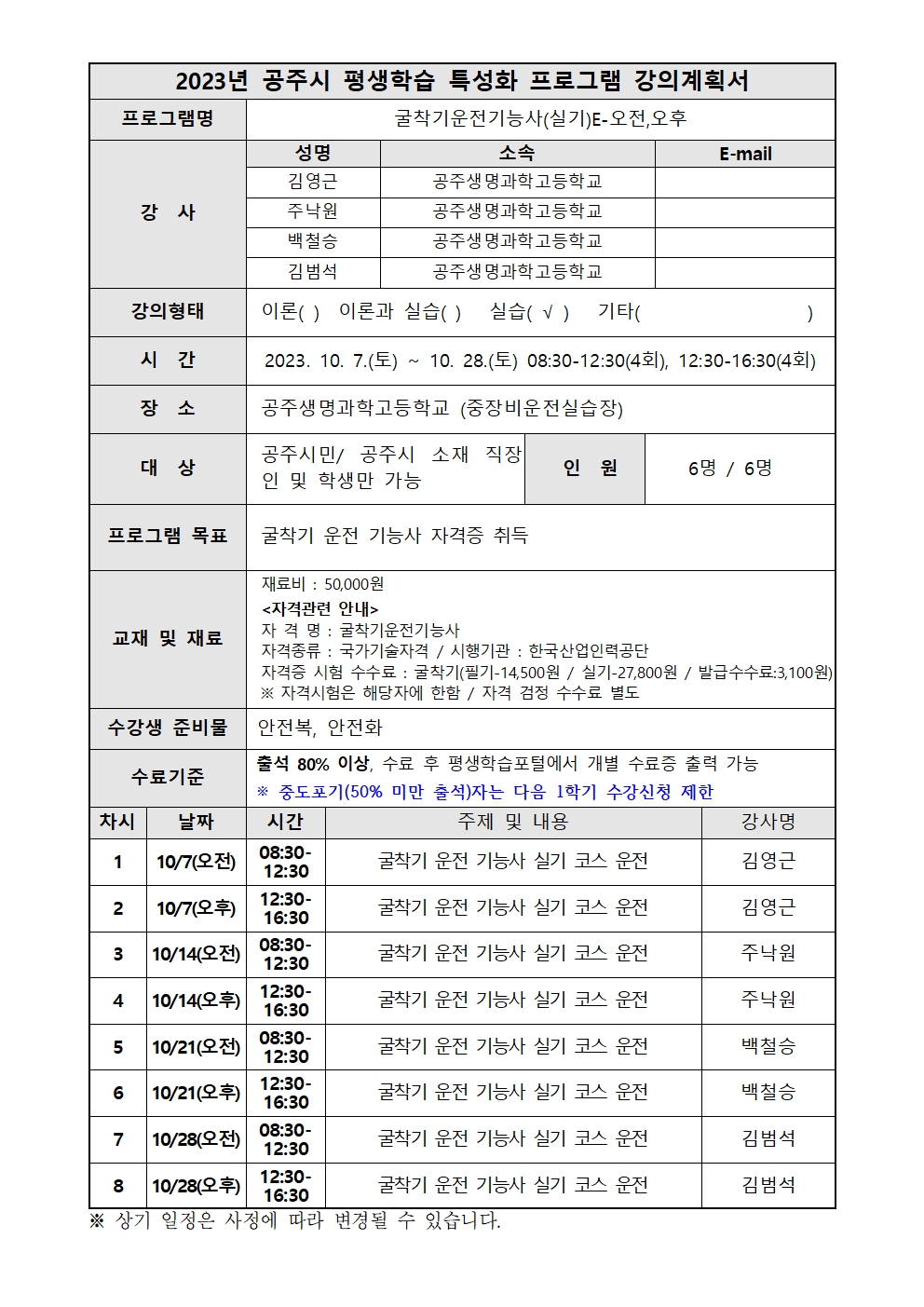 | 강의계획서 | 강의계획서(게시용)-굴착기운전기능사(실기)E-오전,오후001.jpg | ||